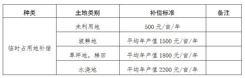 永久占地补偿费标准按照《山西省人民政府关于重新公布全省征地区片综合地价的通知》(晋政发〔2023〕12号)文件规定执行。