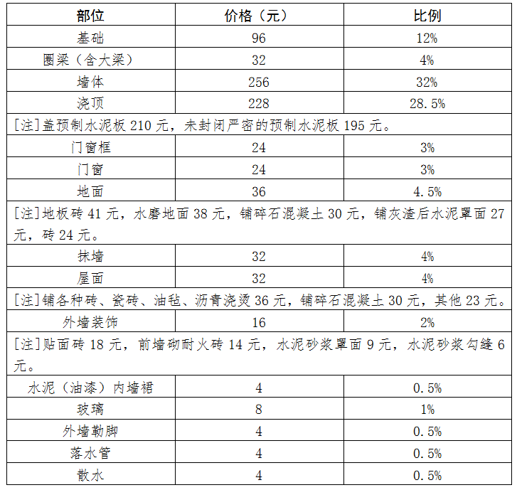 根据各部位补偿定价,有一项算一项,依次相加,然后乘以房屋面积得出房子整体造价。