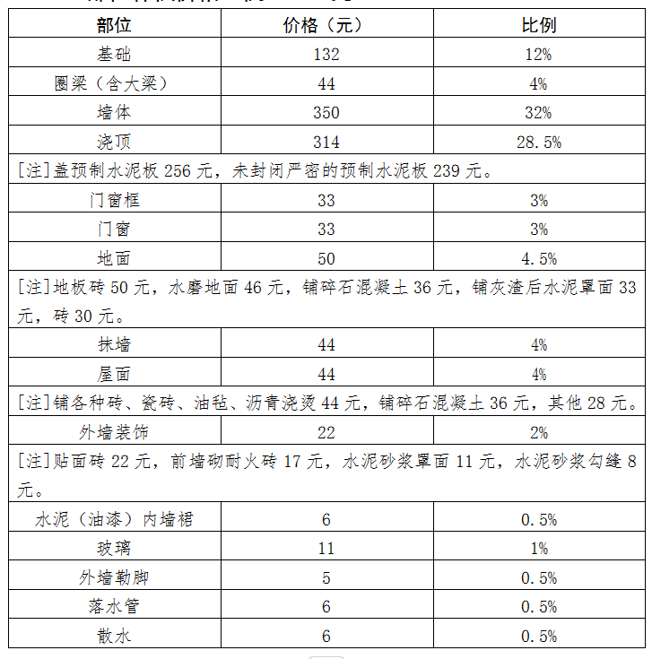 根据各部位补偿定价,有一项算一项依次相加,然后乘以建筑面积得出房子整体造价。